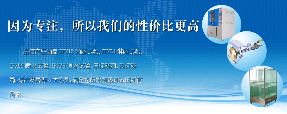 广州岳信——专业生产IPX防水试验机,我们真诚欢迎各界朋友一起交流讨论,我们将不断完善IPX防水测试设备,为广大客户提供更好更优质的服务。